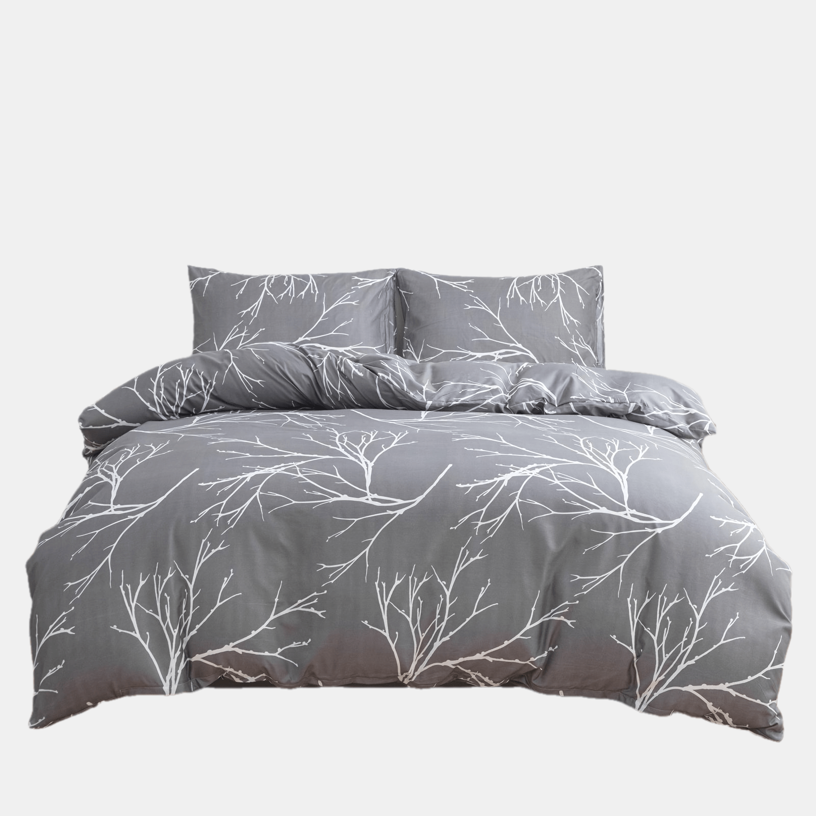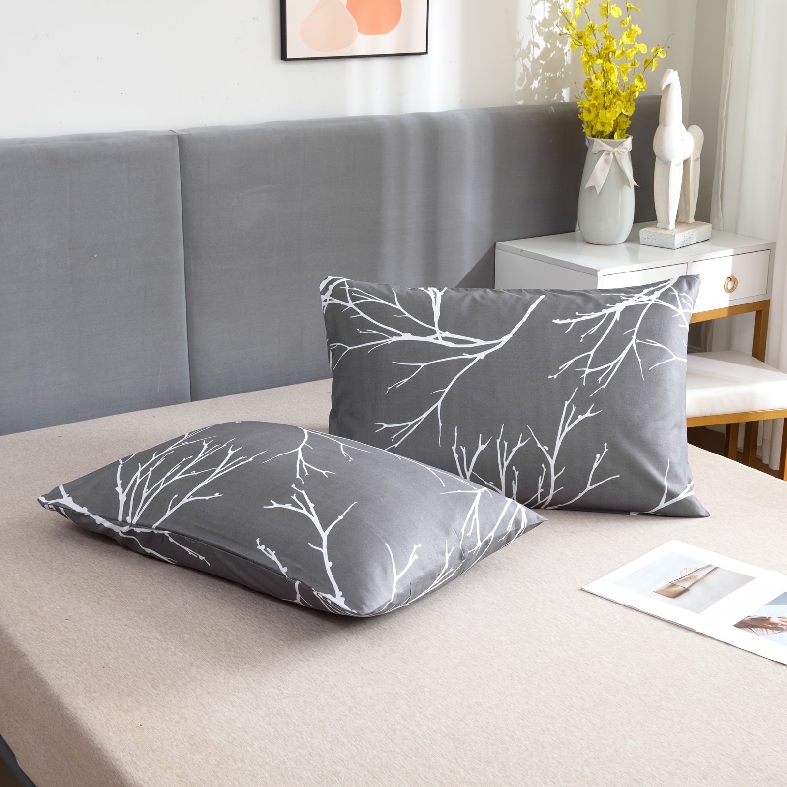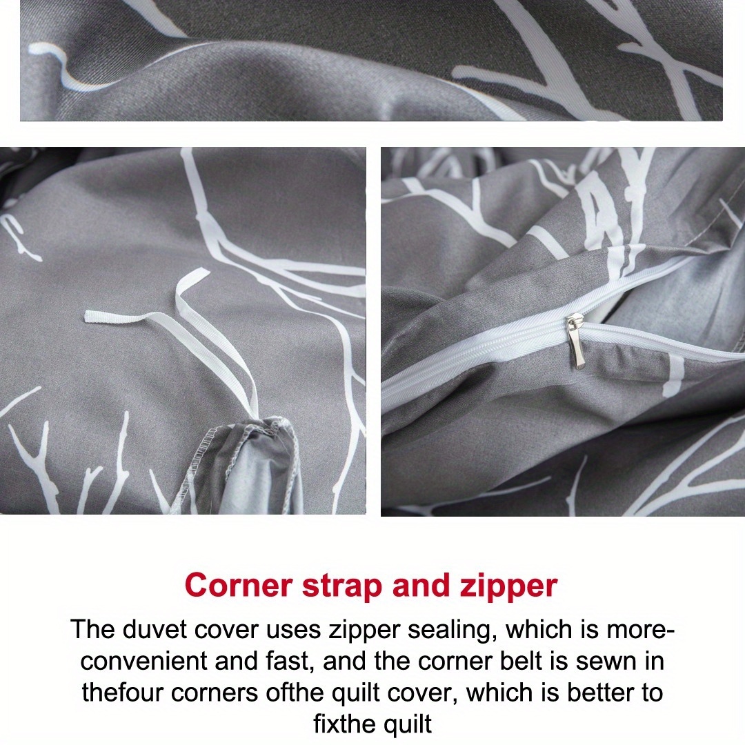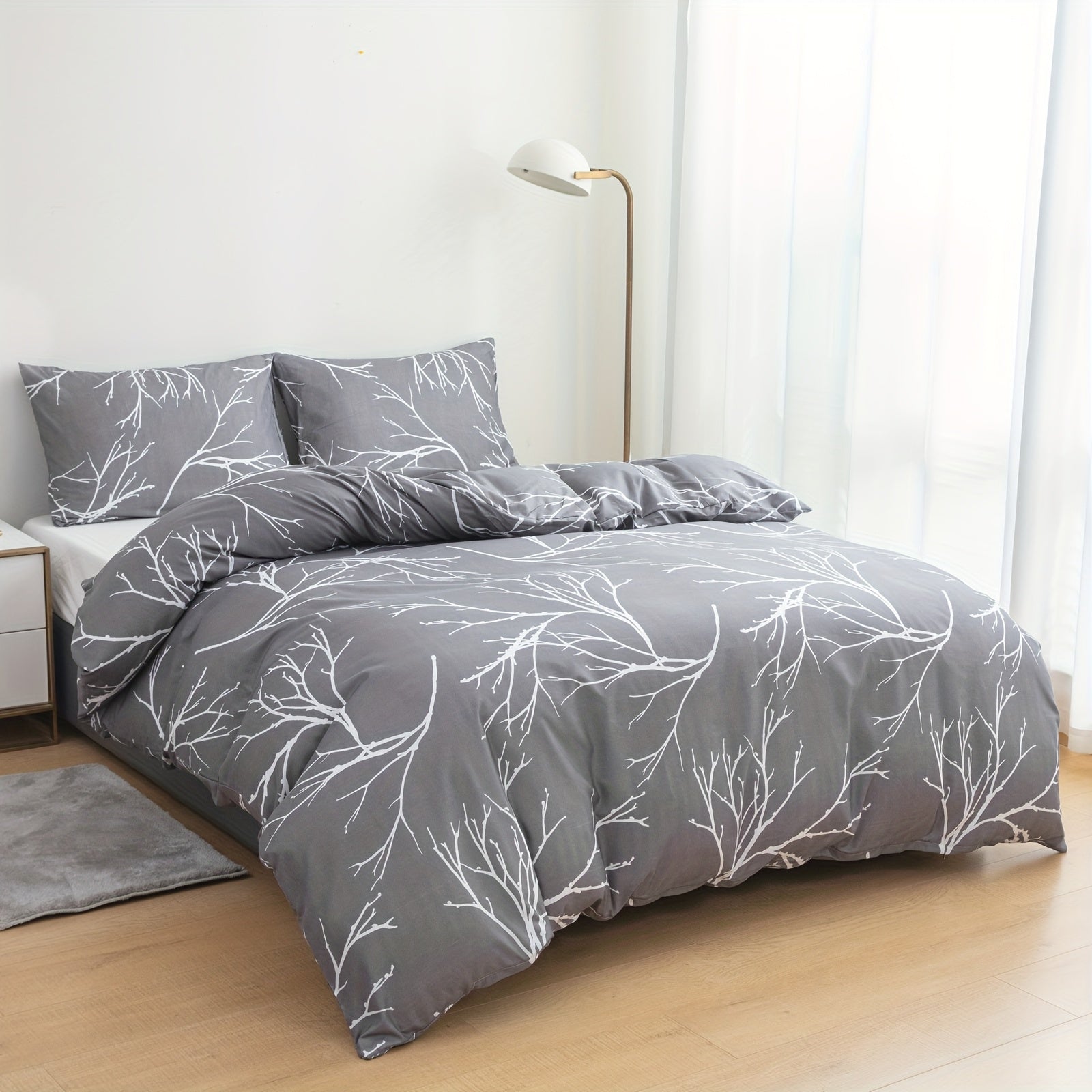 100% Polyester Printed Duvet Cover Set + Pillowcase 3pcs Set Lien White Branch Leaf Floral Print, 2*Pillowcases, 1*Duvet Cover, Unfilled, Grey Bedding, Ultra Soft Breathable Comfortable Polyester Material, Suitable for All Se