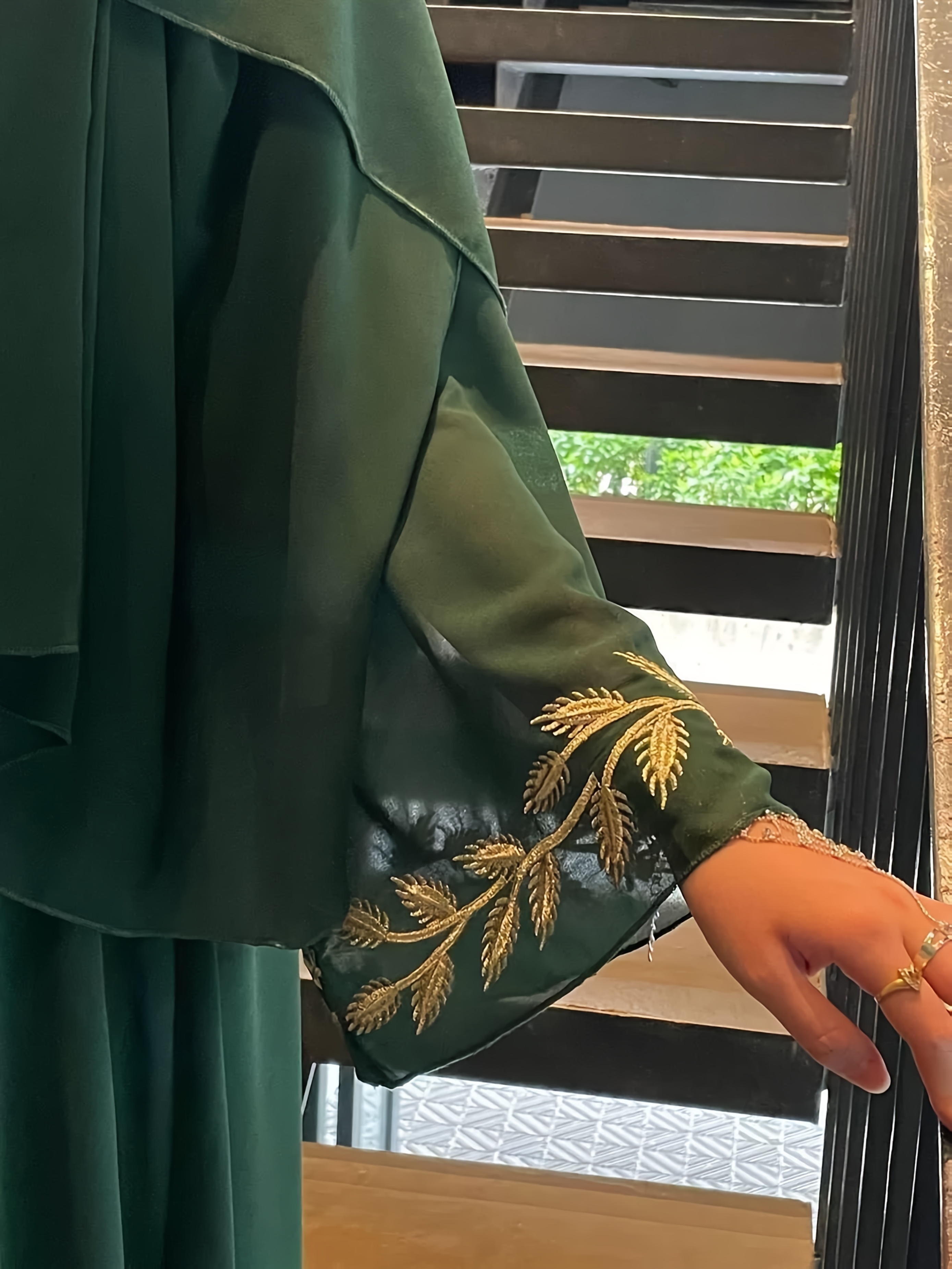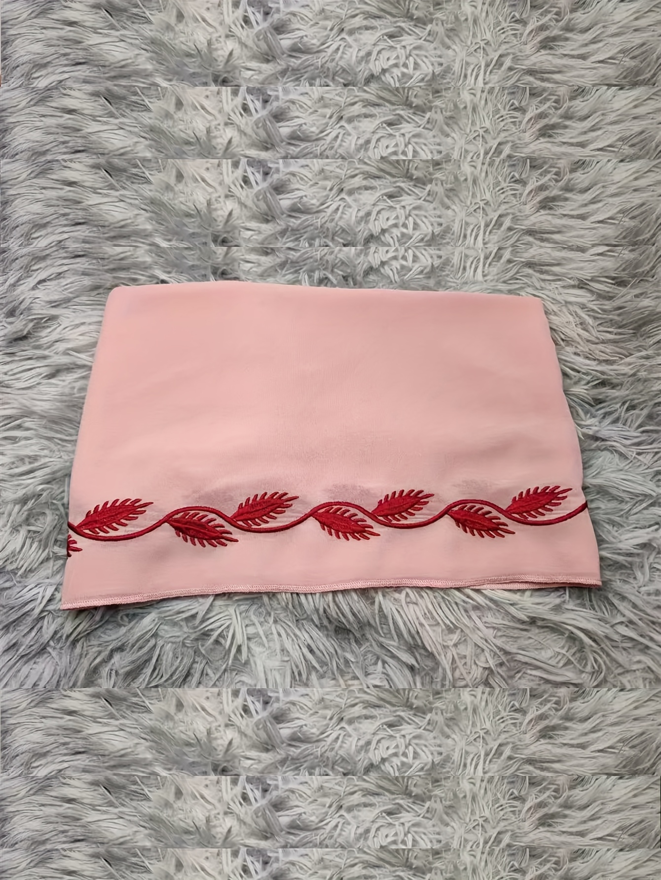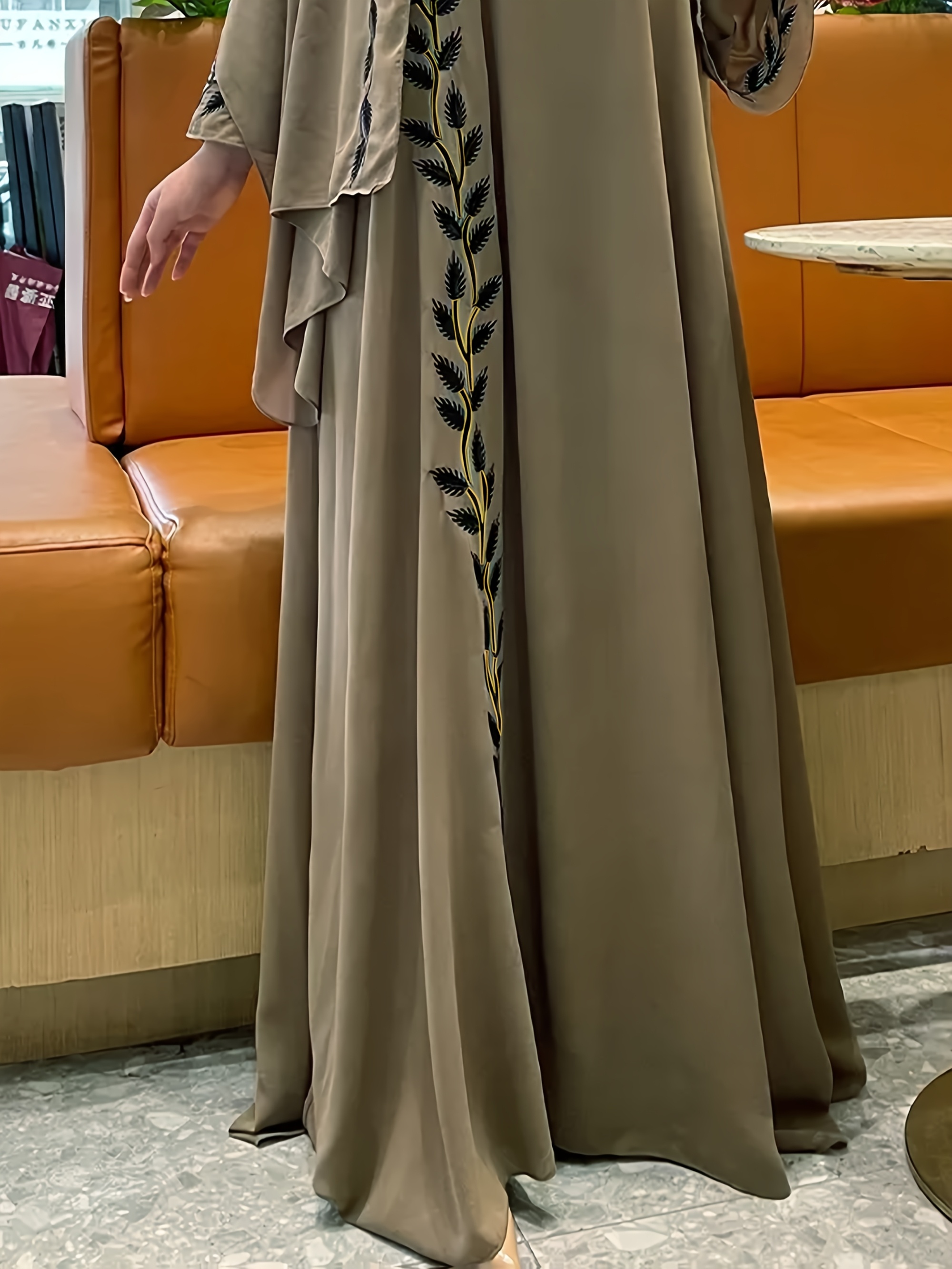 2pcs set of Middle Eastern clothing, fashionable street style, pink round collar embroidered long robe + headscarf