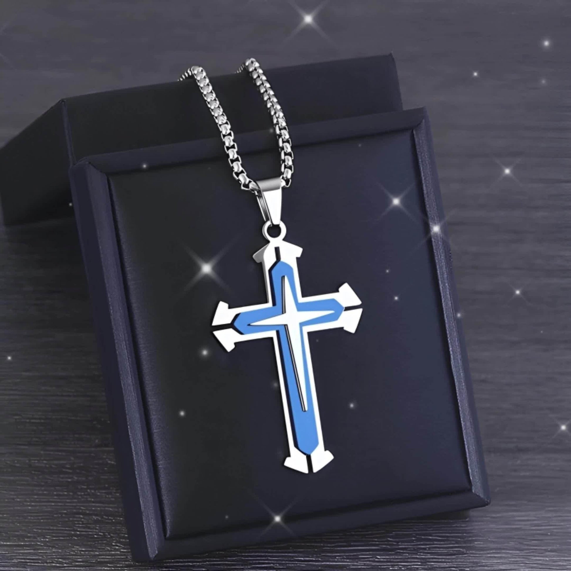 A Stylish Multi-layer Cross Necklace for Men - A Domineering Guardian Necklace for Men And Women - Fashionable Necklace, Elegant Design, Classic Jewelry Clothing Accessories for Dressing Up Holiday Gifts,Valentine's Day