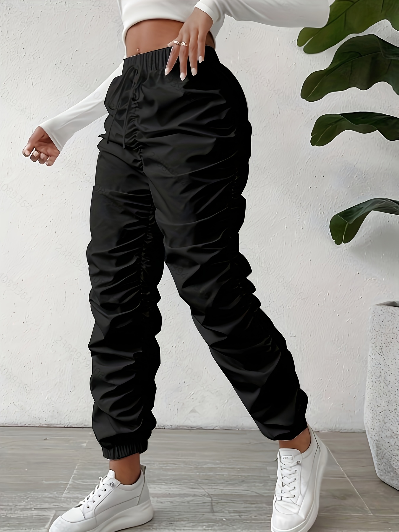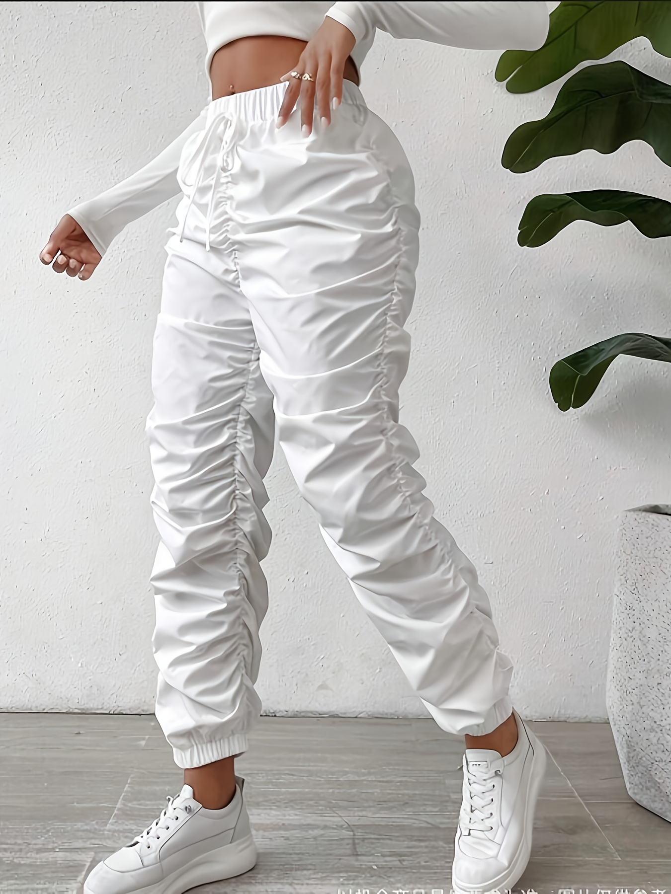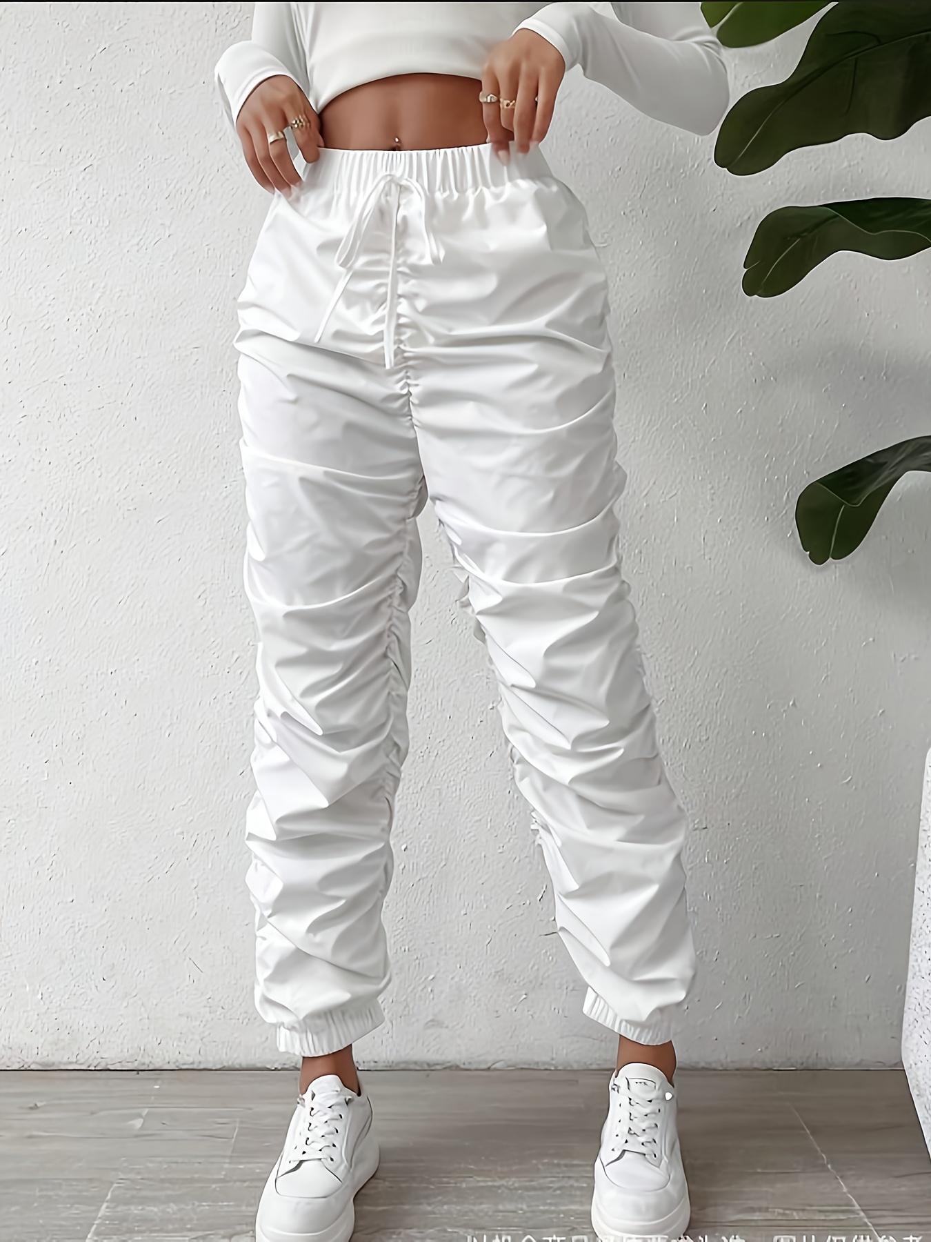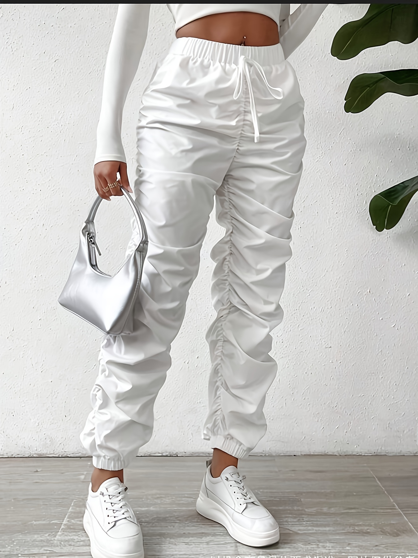 Elegant Full-Length Wrinkle/pleated Hem Pants - Solid Color Smooth Non-Stretch Leg for Dress Pants, Spring/Summer Casual & Dress Wear, Machine Washable Regular Fit Trousers