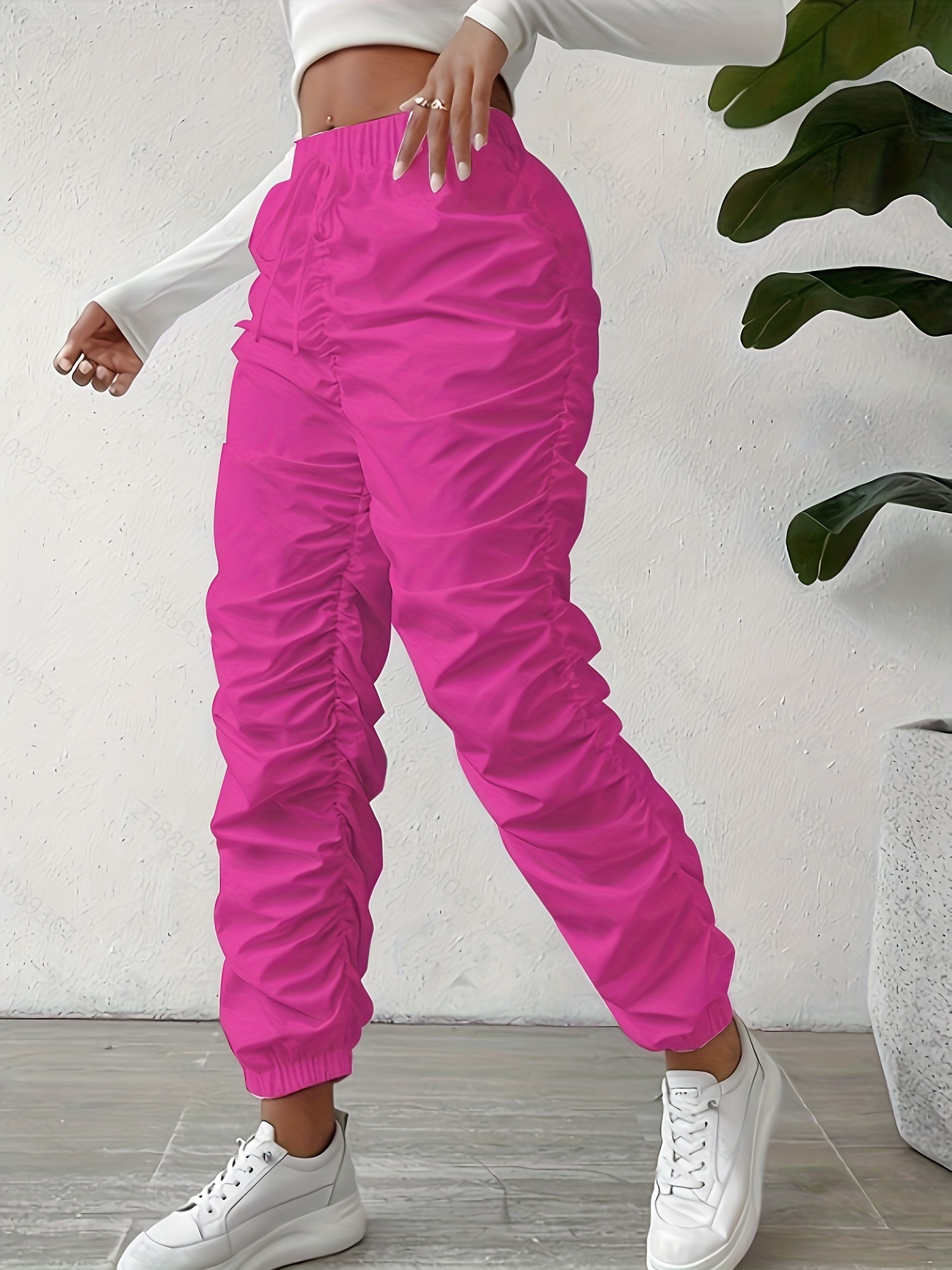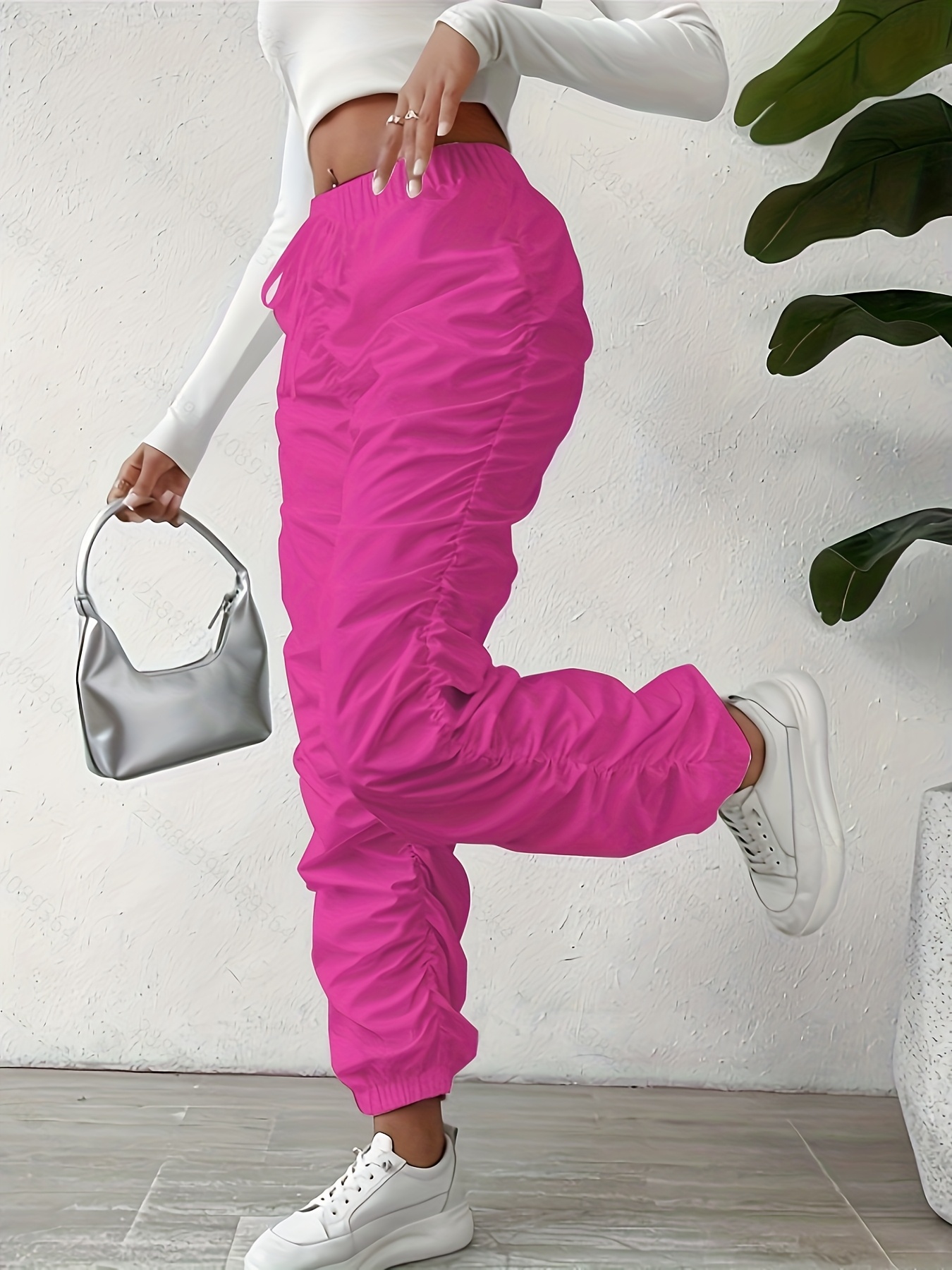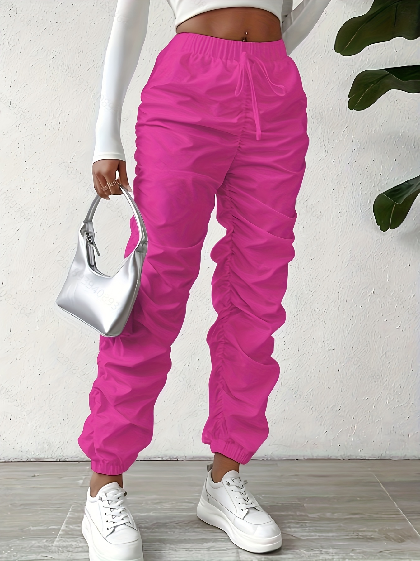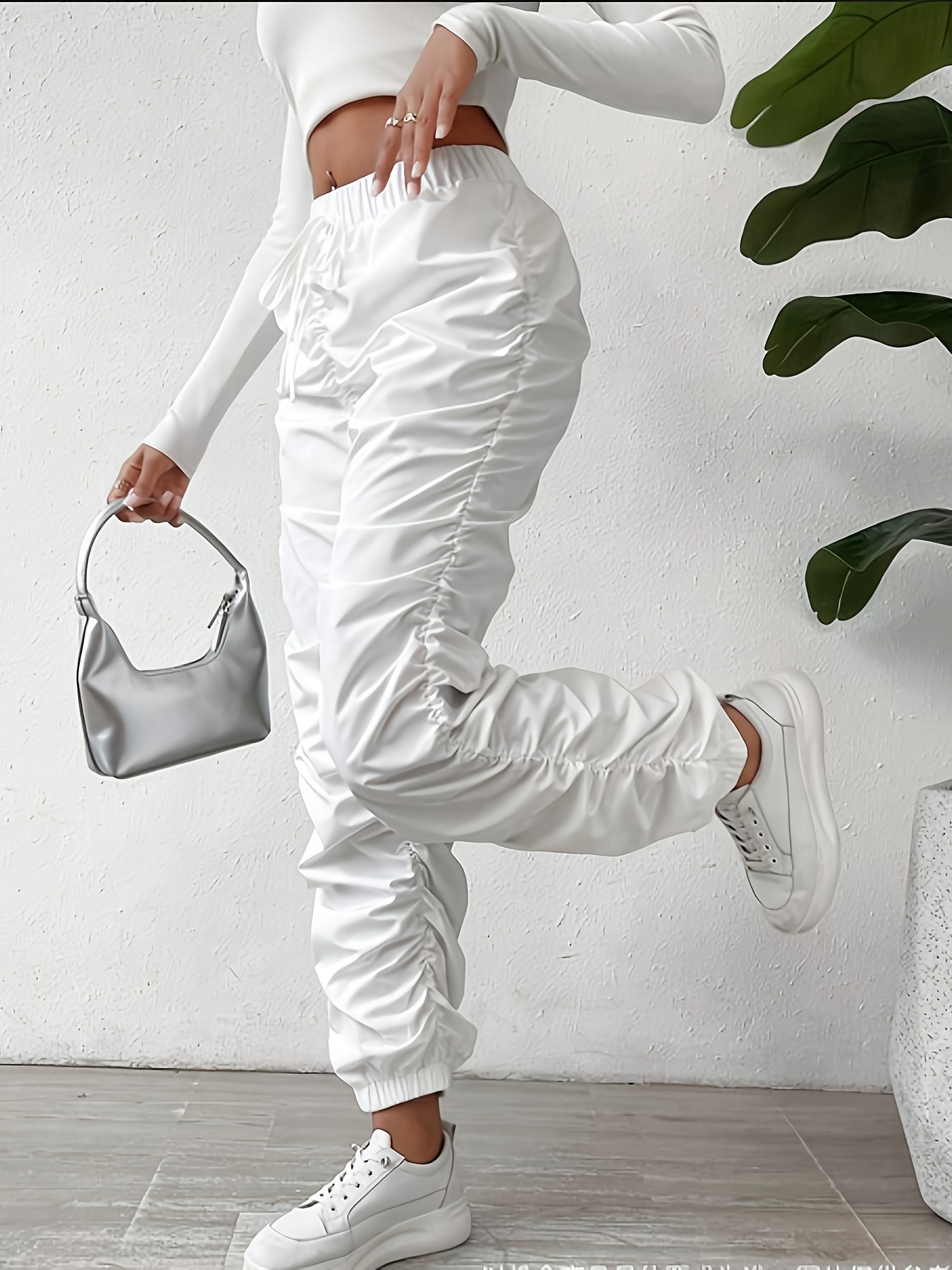 Elegant Full-Length Wrinkle/pleated Hem Pants - Solid Color Smooth Non-Stretch Leg for Dress Pants, Spring/Summer Casual & Dress Wear, Machine Washable Regular Fit Trousers