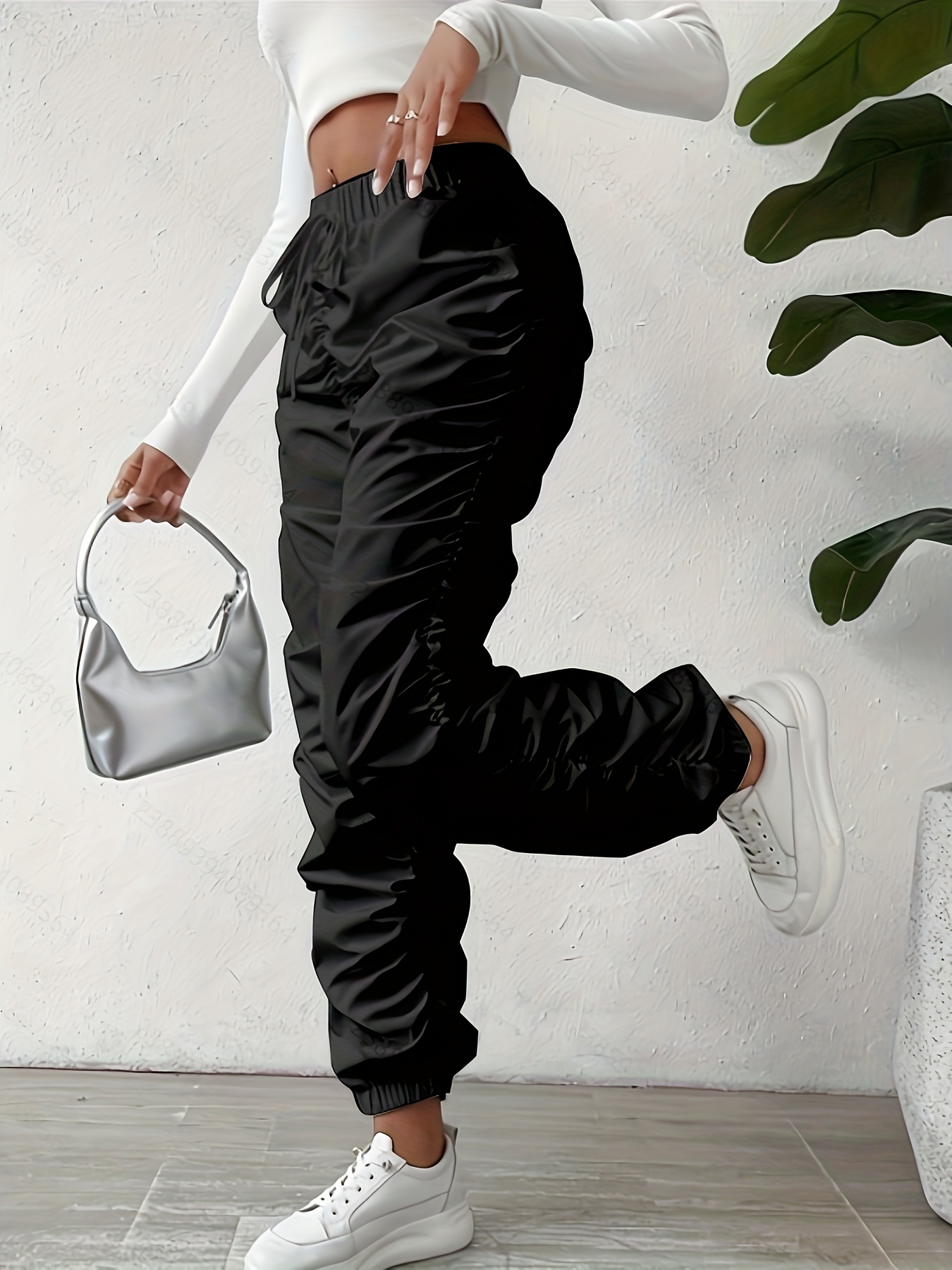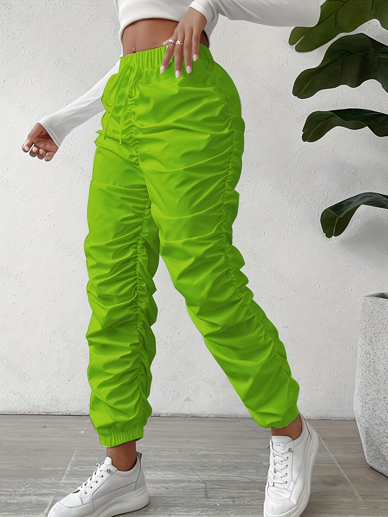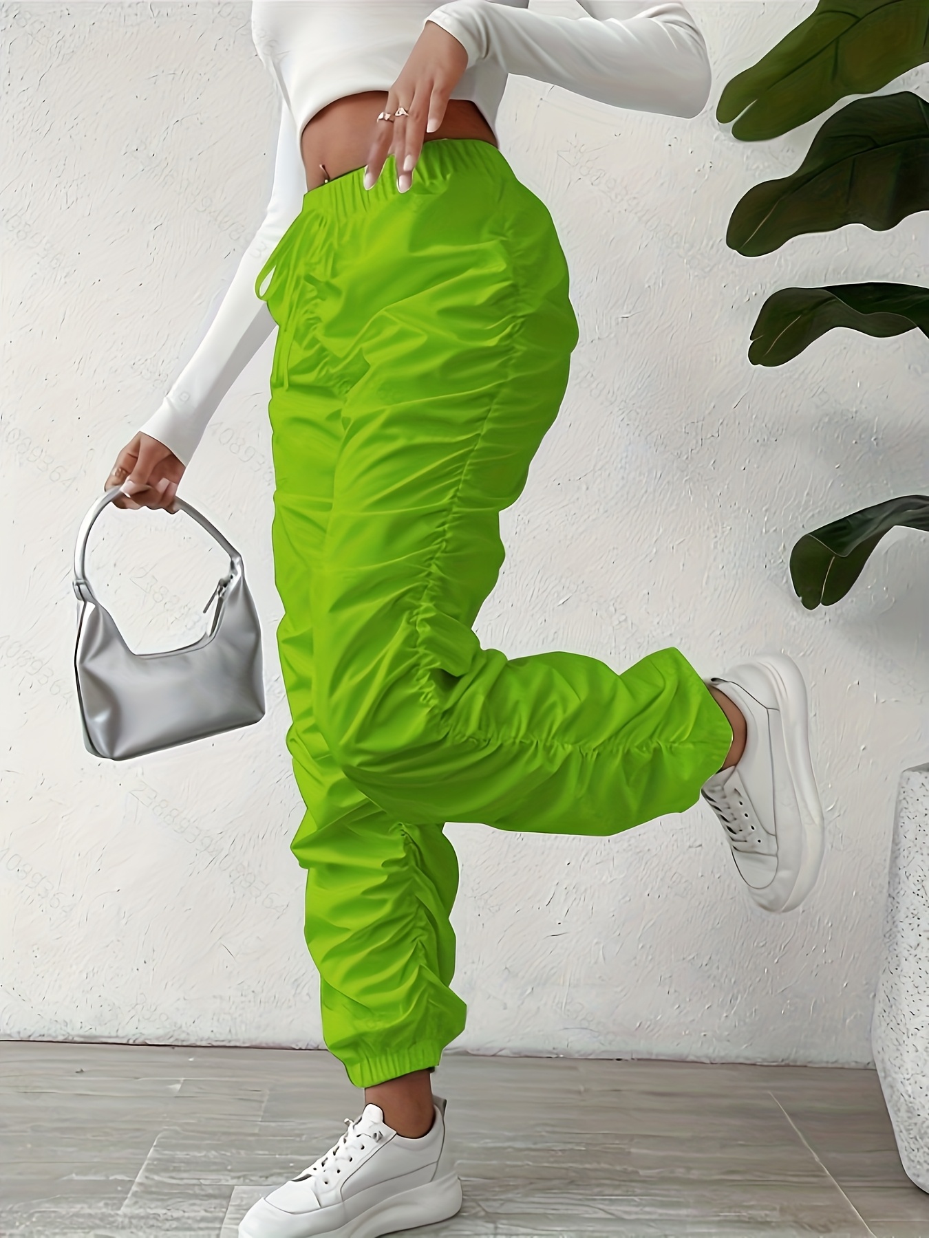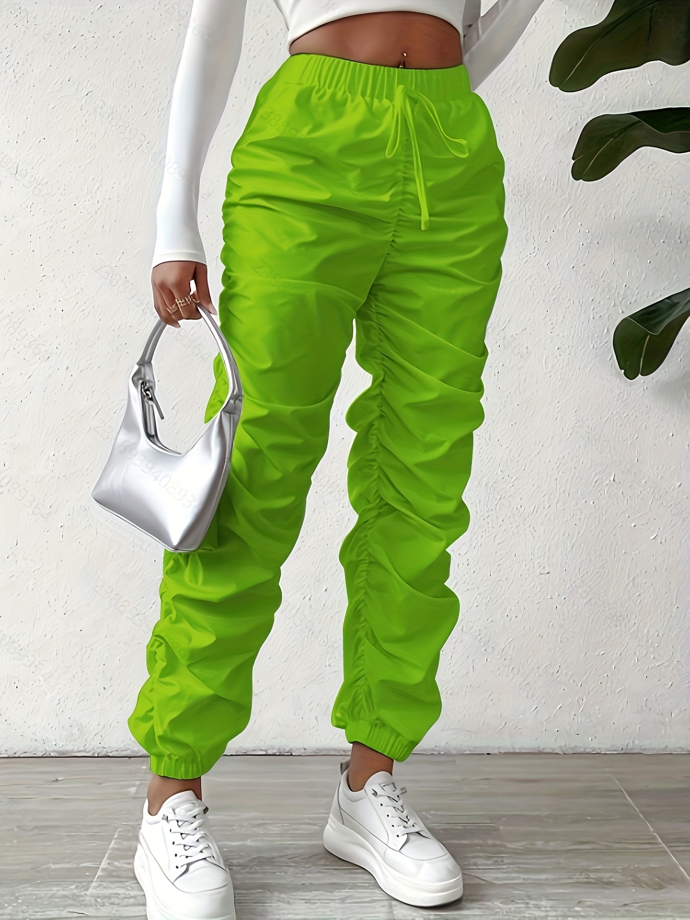 Elegant Full-Length Wrinkle/pleated Hem Pants - Solid Color Smooth Non-Stretch Leg for Dress Pants, Spring/Summer Casual & Dress Wear, Machine Washable Regular Fit Trousers