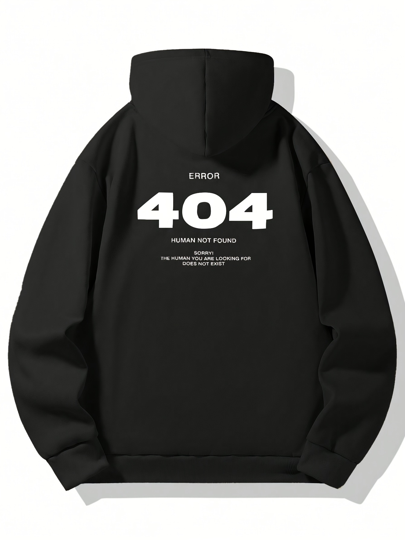 Men's Casual Hooded Sweatshirt with Bold 404 Graphic Print & Humorous Text, Loose Fit Streetwear Pullover, Black/White Lettering, Front Pockets, Non-Stretch Fabric, Sweater Hoodie, Relaxed Clothing, Trendy Design, Functional