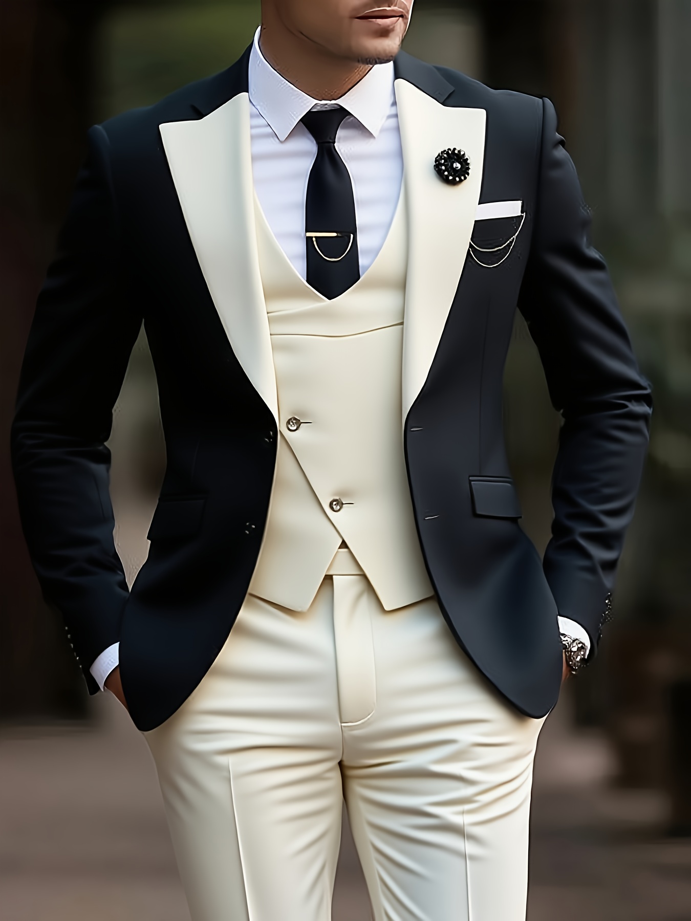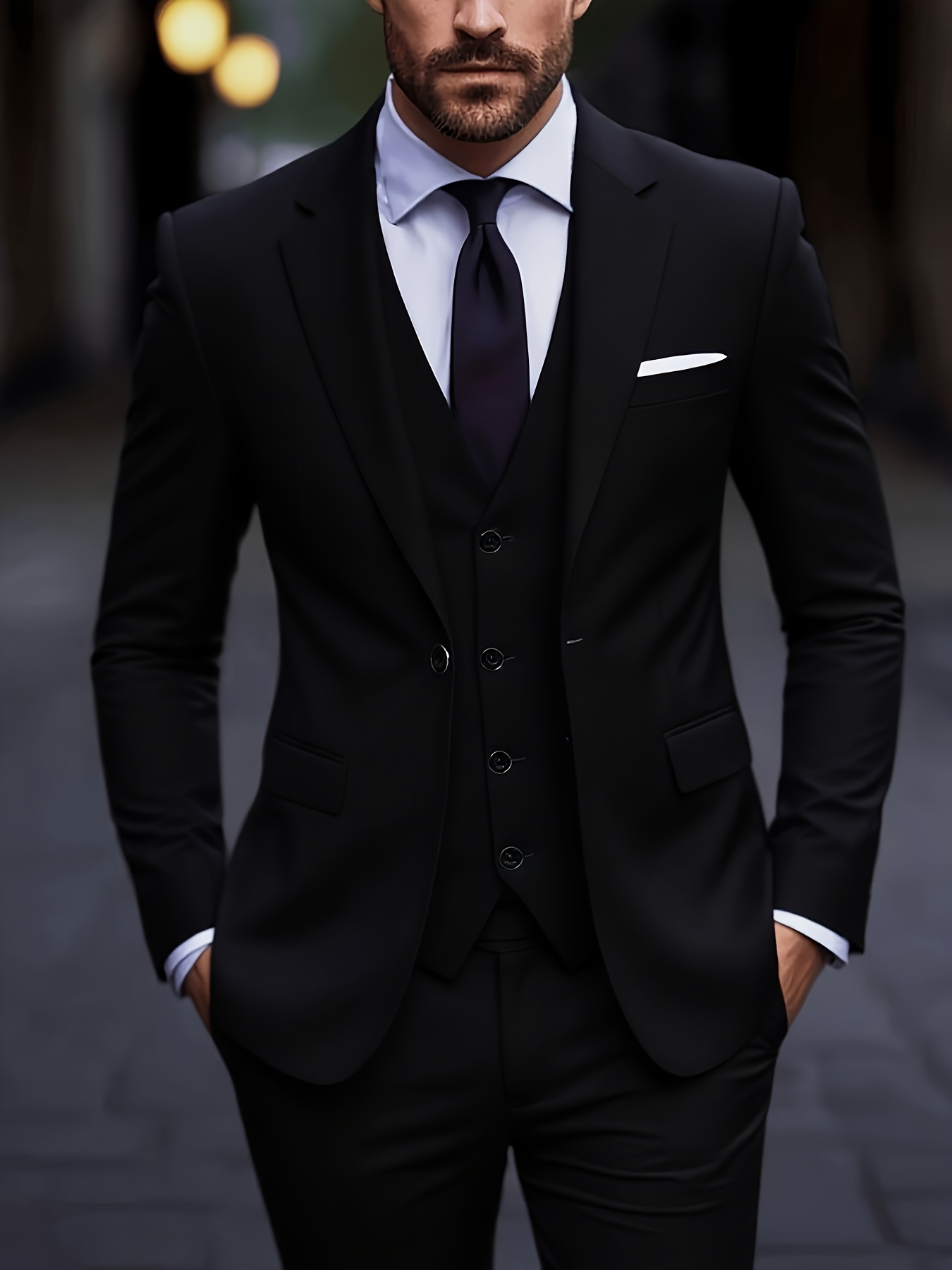 Men's Premium Three-Piece Suit Set, Plus Size Men’s, Includes Jacket and Vest – Perfect for Formal Wear Weddings Workwear Holiday Gifts